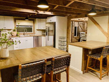 Located out in the country amid crops and cattle, you’ll love your time at The Justice Barn, our second renovated barn on the property. It is named for the wonderful couple we purchased the barn from before moving it a mile through the fields to give it a new life. Designed with togetherness in mind, the kitchen sits in the center of the home, adjacent to the dining room that seats 10 and open to the living room that is home to a huge custom sofa that fits a crowd! The kitchen is stocked with everything you’ll need to prepare meals and fix your morning coffee.